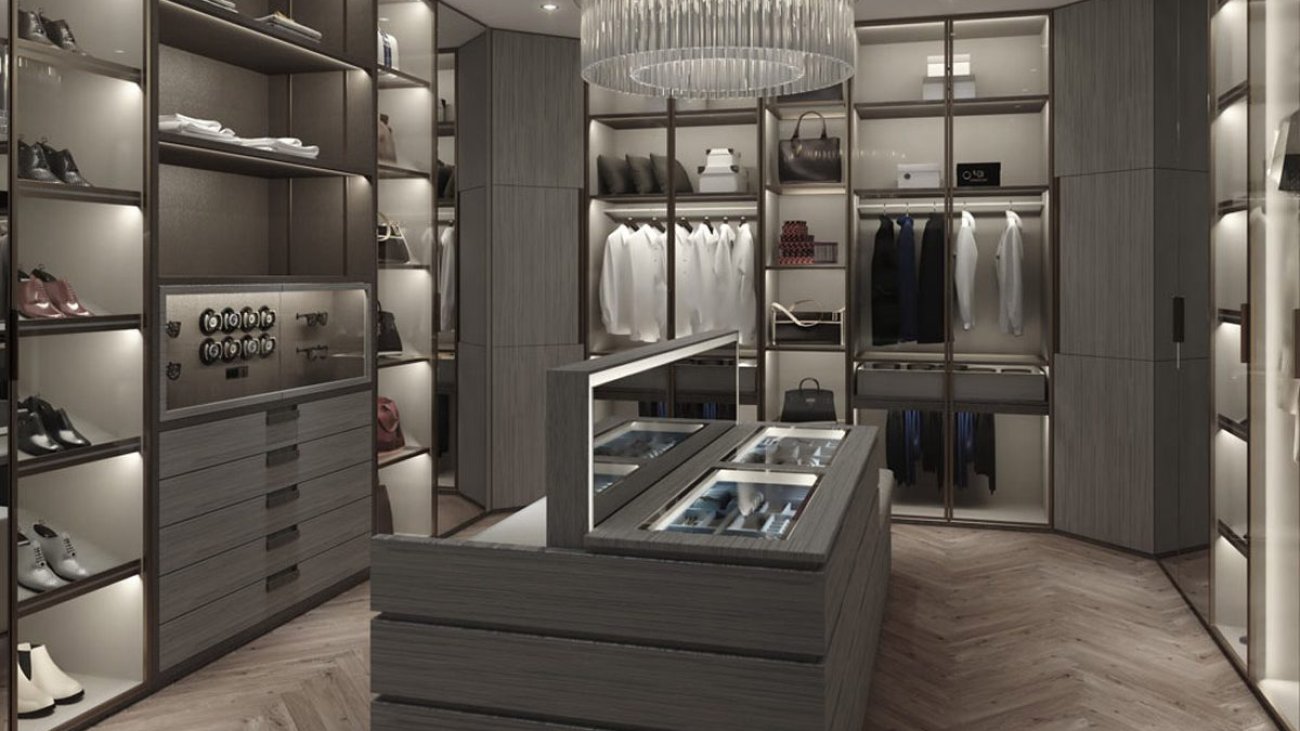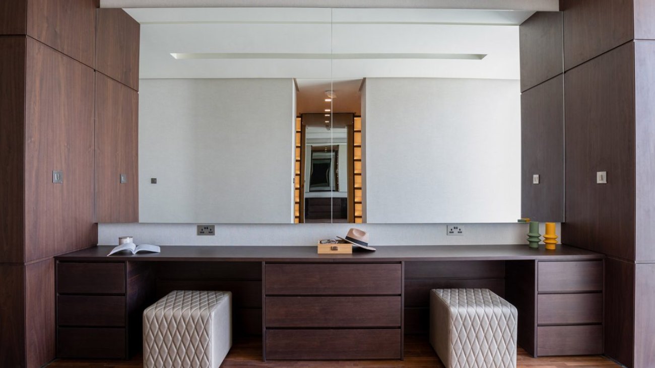There are a variety of storage solutions that cater to hanging or folding clothes on rails or drawers, custom shoe displays, or built-in make-up stations. It can be crafted in a range of colours, materials, and metallic finishes. Each client can customise the overall look of the dressing room as well, whether it’s a private space or has an open, door-free design.